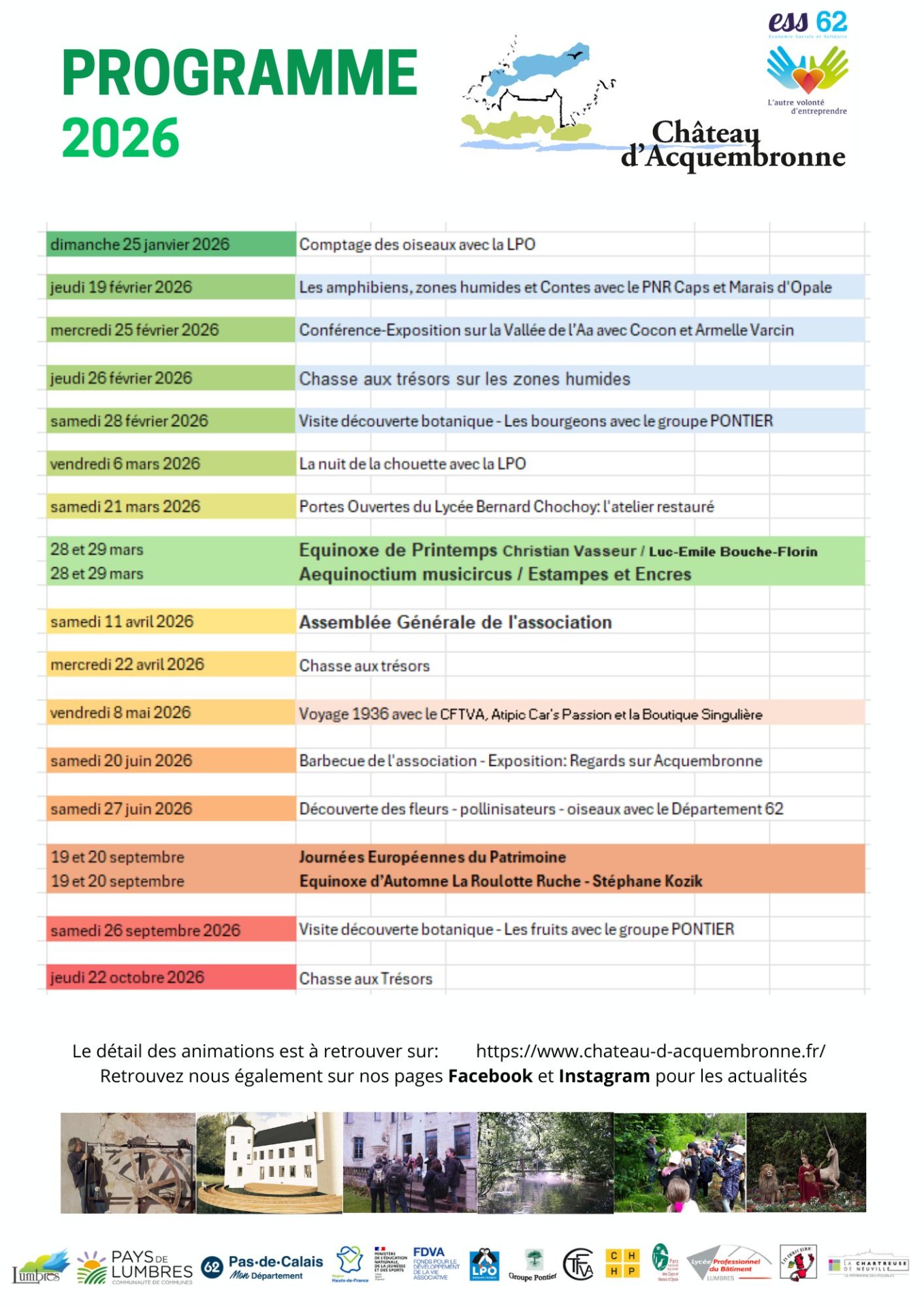 Susciter des partenariats et fédérer les acteurs à même d'apporter une plus-value au projet, par leurs savoirs et savoir-faire dans les domaines Arts Histoire Nature, dans l'environnement proche du château (lycée Bernard Chochoy, CCPL, PNRCMO, associations), mais aussi dans les Hauts-de-France (Doulac, LPO, ...)