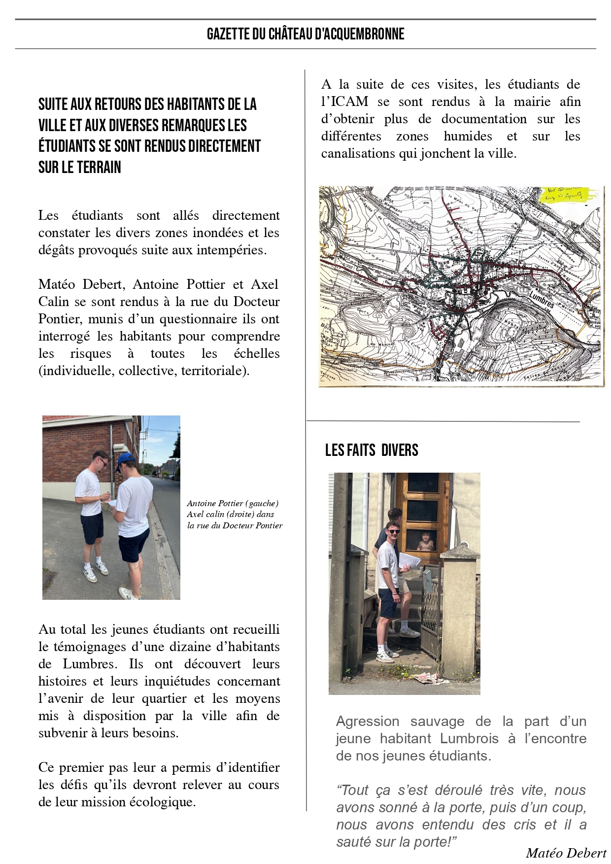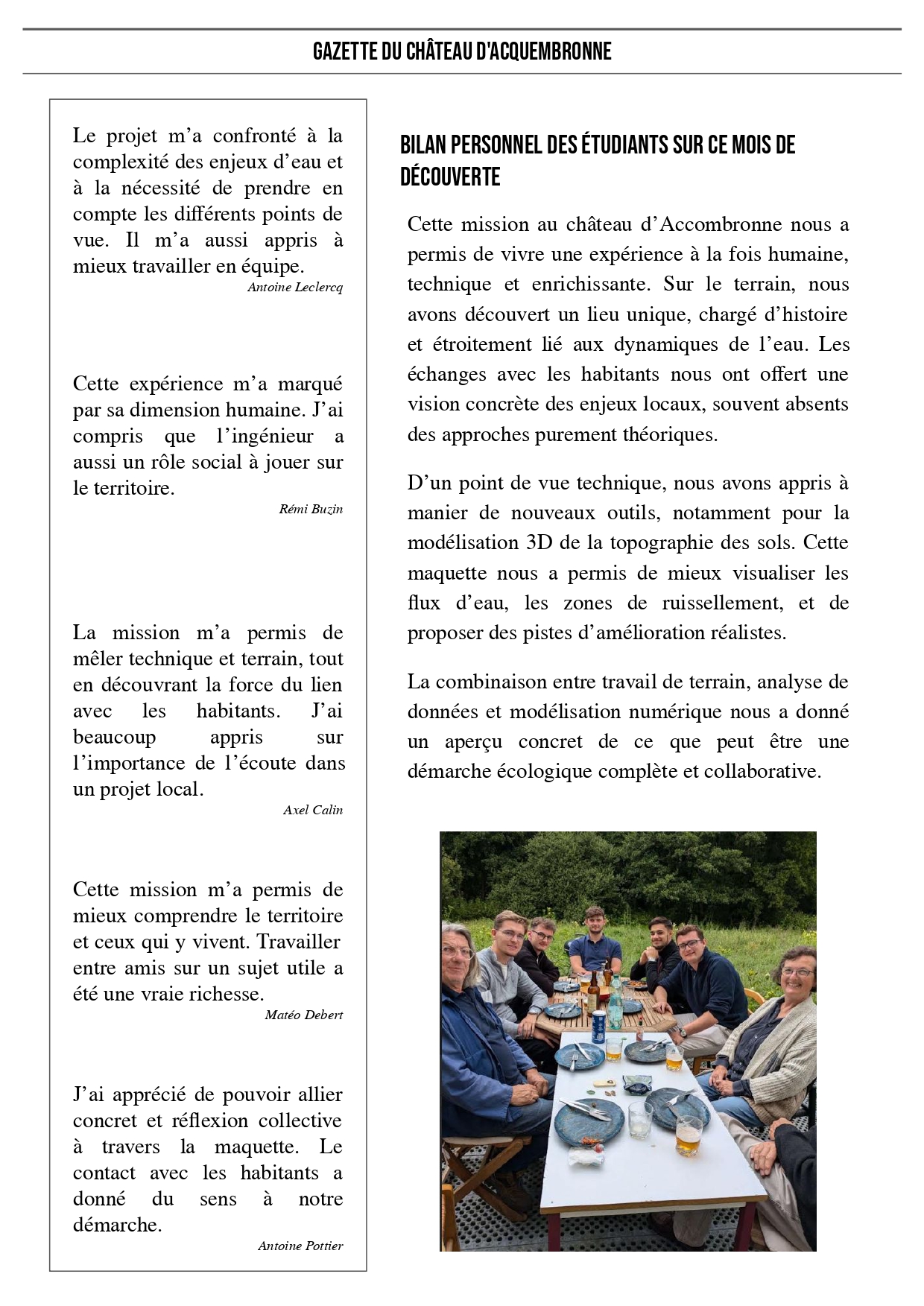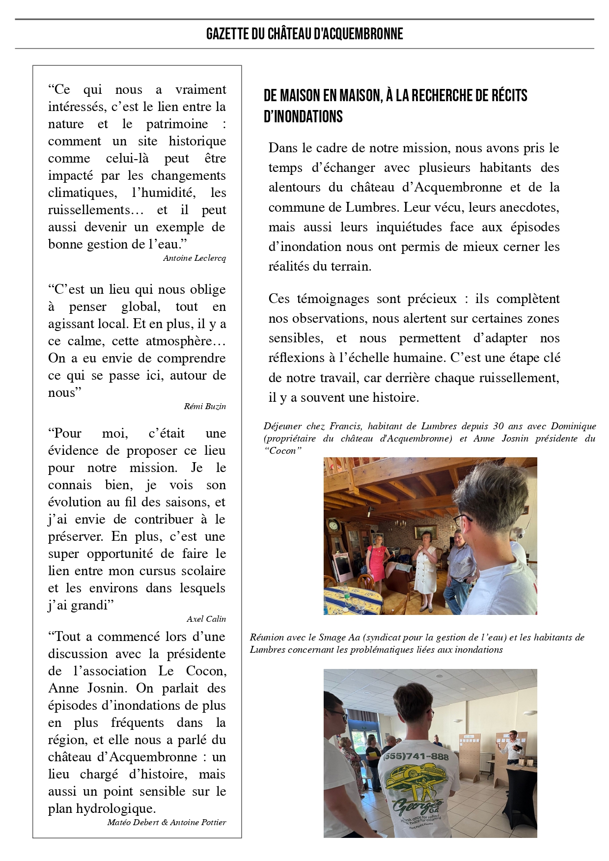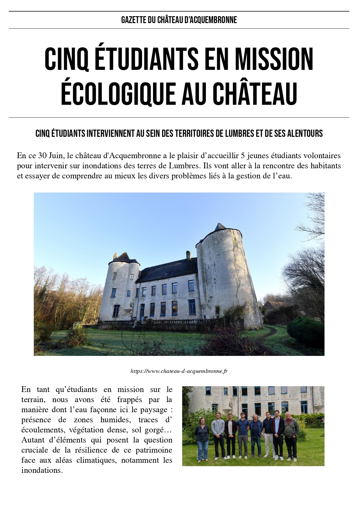Avec l'association Cocon, nous avons accueillis 5 étudiants de l'ICAM en juillet 2025. Ils ont fait un stage sur la vallée de l'Aa et rencontré les habitants pour réfléchir ensemble aux travaux de prévention contre les inondations