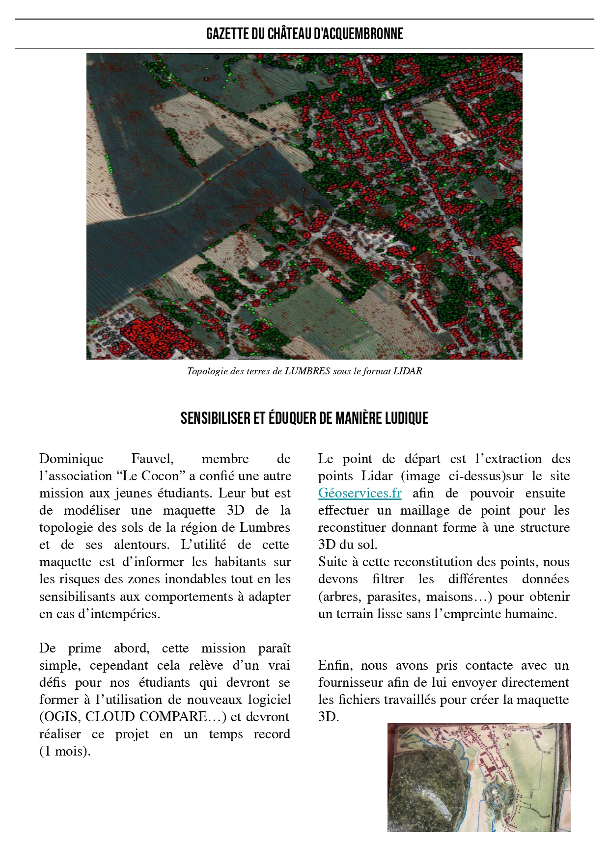 Richard Pereira de Moura a réalisé un radeau destiné à être planté et à se promener au gré du courant des canaux du château d'Acquembronne. Ce chantier, réalisé avec l'aide des membres de l'association et des charpentiers du Lycée Bernard Chochoy, a aussi été découvert par la classe des CM2 de Madame Christelle Delanoy.